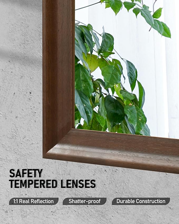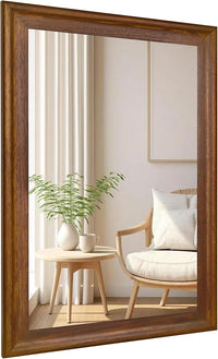 CULER Rustic Wood Wall Mirror for Bathroom,Rectangle 24 x 36 inch Hanging Vanity Mirrors with Wooden Frame for Living Room,Bedroom,Entryway(Walnut Brown)