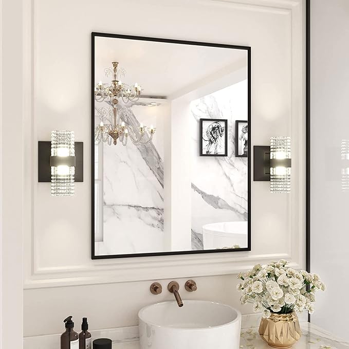 LOAAO 28"X36" Black Rectangle Bathroom Mirror Wall, Matte Black Aluminum Alloy Frame, Tempered Glass, Hangs Vertically or Horizontally, Easy to Install