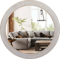 32 Inches Farmhouse Round Wood Mirrors for Wall Decor, Rustic Decorative Circle Mirror for Bathroom, Living Room, Foyer, Entryway
