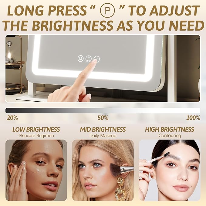 22x18 Inch Vanity Mirror with Lights, 3 Color Dimmable LED Lighting, Smart Touch Control & 360° Rotation, Large Makeup Mirror for Bedroom, Dressing Room (White)