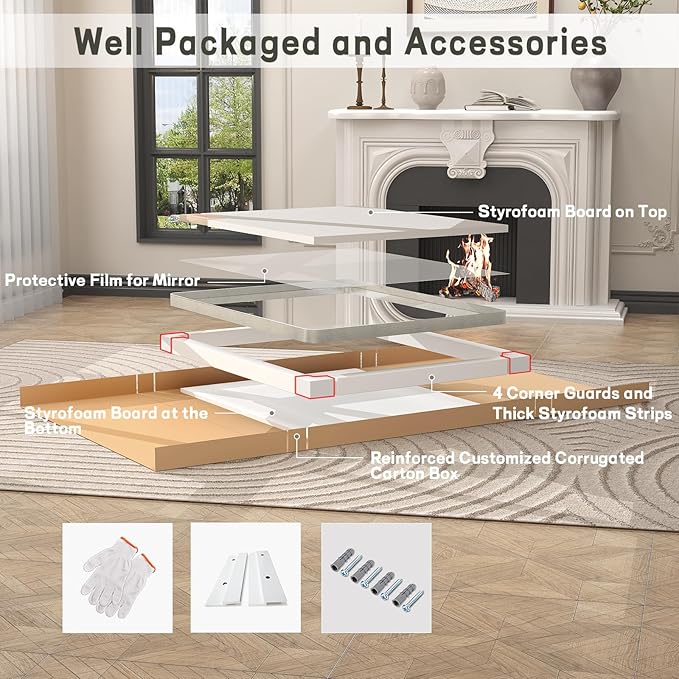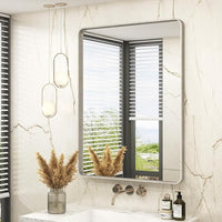 28x36 Inch Brushed Nickel Bathroom Mirror, Brushed Silver Metal Framed Wall Mirror, Rounded Rectangle Bathroom Vanity Mirror, Anti-Rust, Shatterproof (Horizontal/Vertical)