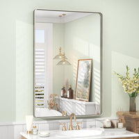 24x36 Inch Brushed Nickel Bathroom Mirror, Brushed Silver Metal Framed Wall Mirror, Rounded Corner Rectangle Vanity Mirror, Tempered Glass, Anti-Rust, Shatterproof (Horizontal/Vertical)