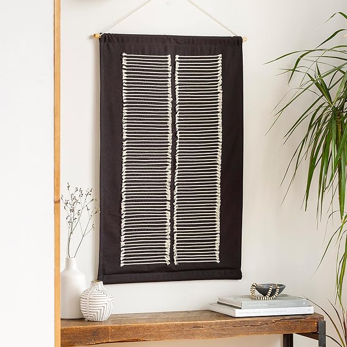 Mark&Day Wall Art, Lassing Modern Farmhouse Black Macrame Tapestry Wall Hanging for Living Room, Bedroom, Office or Kitchen (36"H x 24"W)