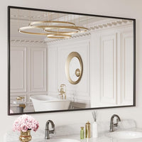 LOAAO 60"X40" Black Rectangle Bathroom Mirror Wall, Matte Black Aluminum Alloy Frame, Tempered Glass, Hangs Vertically or Horizontally, Easy to Install