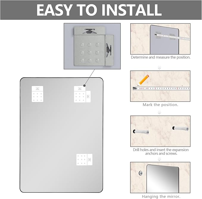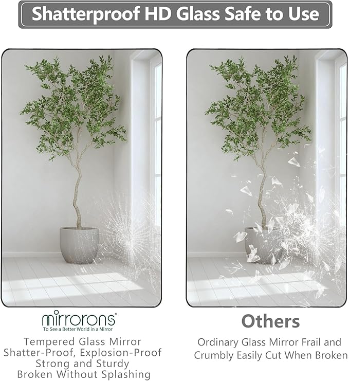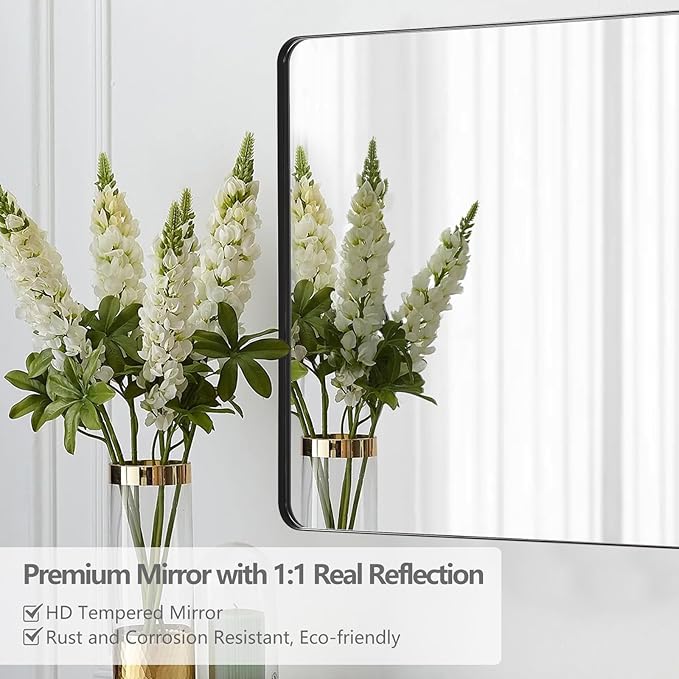 Mirrorons Black Bathroom Mirror 36 x 24 Inch, Black Wall Mirror, Matte Black Bathroom Vanity Mirror with Rounded Corner, Shatterproof (Horizontal/Vertical)