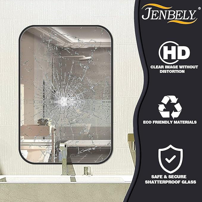 20x28 Inch Black Wall Mirror for Bathroom, Brushed Metal Framed Mirror with Rounded Corner, Rectangle Bathroom Vanity Mirror for Bedroom or Living Room, Horizontal/Vertical