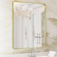 WEER Gold Bathroom Mirror, 28X36 Inch Brushed Gold Metal Frame Mirror, Rounded Rectangle Gold Bathroom Vanity Mirror for Wall, Tempered Glass, Anti-Rust, Hangs Horizontally or Vertically