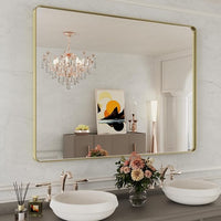 WEER Gold Bathroom Mirror, 48X36 Inch Brushed Gold Metal Frame Mirror, Rounded Rectangle Gold Bathroom Vanity Mirror for Wall, Tempered Glass, Anti-Rust, Hangs Horizontally or Vertically