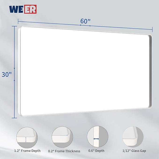WEER White Bathroom Mirror 60X30 Inch, Rounded Rectangle White Metal Frame Mirror, Matte White Bathroom Vanity Mirror with Tempered Glass, Anti-Rust, Hangs Horizontally or Vertically