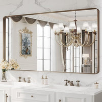WEER 60x30 Inch Bronze Bathroom Mirror for Vanity, Brushed Bronze Metal Frame Rounded Rectangle Mirror with Tempered Glass, Anti-Rust (Horizontal/Vertical)