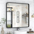 40x36 Inch Black Framed Bathroom Mirror for Wall, Black Metal Framed Mirror, Rounded Rectangle Bathroom Vanity Mirror, Anti-Rust, Shatterproof (Horizontal/Vertical)