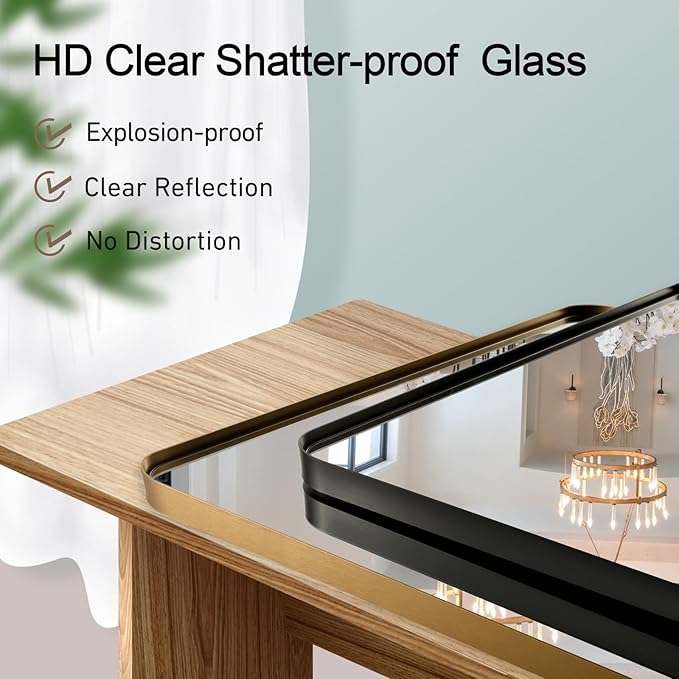 22x30 Inch Rectangle Bathroom Mirror, Brushed Black Vanity Mirrors for Wall, Metal Frame Wall Mirror, Mirror with Round Corner for Bedrooms, Entryways, Living Rooms, Horizontal/Vertical