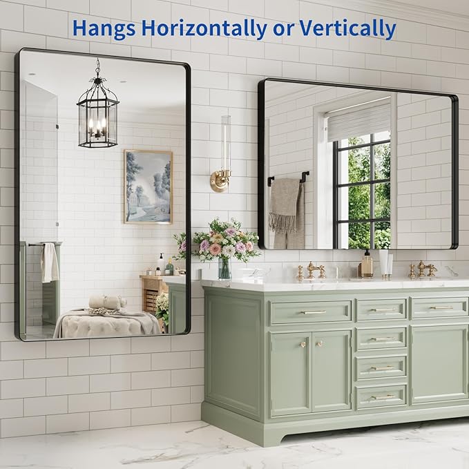 WEER Black Bathroom Mirror for Wall, 60X40 Inch Matte Black Mirror, Rectangular Black Metal Framed Vanity Mirror with Tempered Glass, Rounded Corner, Anti-Rust (Horizontal/Vertical)