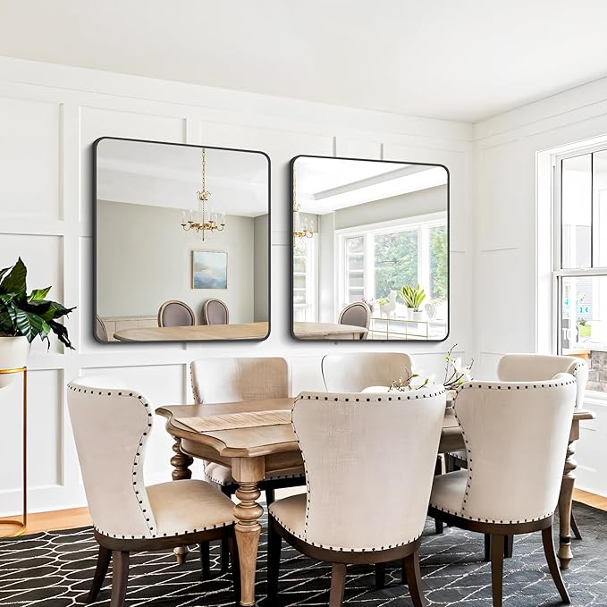 FORBATH Bathroom Mirror 36" x 36",Large Square Wall Mirror with Black Aluminum Frame Rounded Corner, Wall Mounted Mirror for Bathroom Bedroom Entryway Living Room