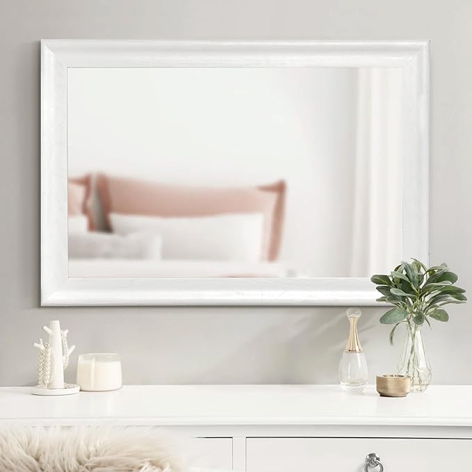 CULER White Wood Wall Mirror for Bathroom,Rectangle Rustic 24 x 36 inch Hanging Vanity Mirrors with Wooden Frame for Living Room,Bedroom,Entryway (24x36 inch, White)