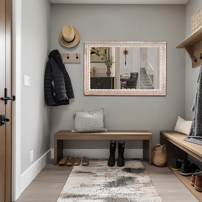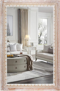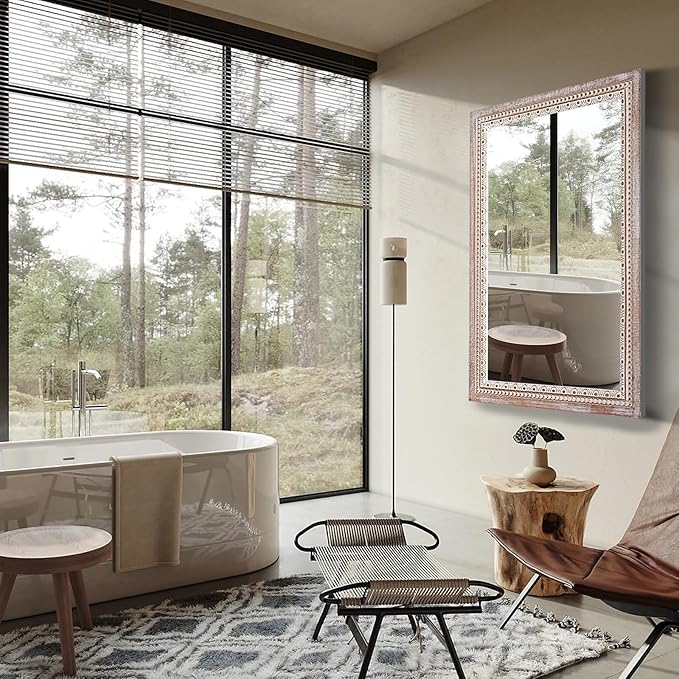 36x24 Inch Wooden Rectangle Bathroom Mirror with Beaded Frame, Rustic Farmhouse Decorative Wall Mirrors for Over Sink, Living Room, Entryway (Horizontal/Vertical Mounting)