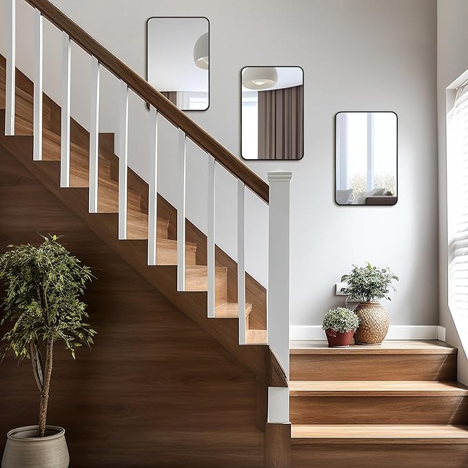 Wall Mount Small Mirror, Brushed Black Metal Framed Rounded Corner Rectangular Makeup Mirror for Bathroom, Bedroom, Living Room (12" x 16",Black)