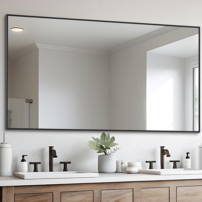 Black Bathroom Mirror for Wall, 30x55 Inch Rectangle Mirrors with Metal Frame, Modern Vanity Wall Mirror Decor for Entryway Hangs, Bathroom Living Room Horizontal or Vertical