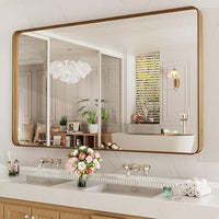 LOAAO 60X30 Inch Bathroom Mirror with Wood Grain Colored Metal Frame, Rounded Rectangle Metal Framed Bathroom Mirror, Anti-Rust, Hangs Horizontally or Vertically, Tempered Glass