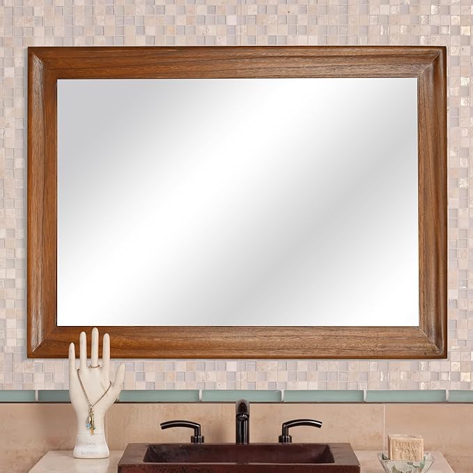 CULER Rustic Wood Wall Mirror for Bathroom,Rectangle Large 30 x 40 inch Hanging Mirrors with Wooden Frame for Living Room,Bedroom,Entryway(Walnut Brown)