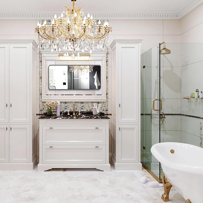 Wall Mount Mirror for Bathroom, Brushed Black Metal Framed Large Rounded Corner Rectangular Vanity Mirror, Anti-Rust, Tempered Glass (30" x 48", Black)