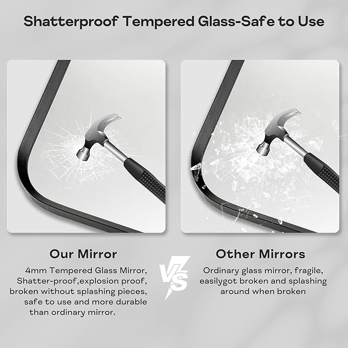 Wall Mount Mirror for Bathroom, Brushed Black Metal Framed Large Rounded Corner Rectangular Vanity Mirror, Tempered Glass (28" x 60", Black)