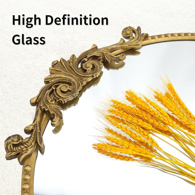 Round Mirror, 28''Baroque Style Circle Mirror Vintage Gold Metal Frame Wall Mirrors for Vanity, Bathroom or Bedroom
