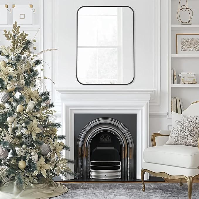 FARMER 16x24 Inch Black Bathroom Mirror, Brushed Rectangle Vanity Mirrors for Wall, Metal Frame Wall Mirror, Vanity Mirror with Round Corner for Bedrooms, Entryways, Living Rooms, Horizontal/Vertical