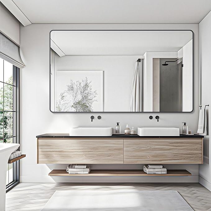 30" x 60"Bathroom Mirror, Matte Black Wall Mirror with Metal Frame, Decorative Rectangular Vanity Mirror for Bedroom Bathroom Living Room Entryway (Horizontal)