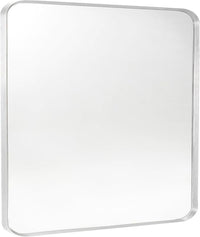 Silver Metal Framed Bathroom Mirror for Wall, Brushed Nickel Rounded Corner Rectangular Bathroom Vanity Mirror, Anti-Rust, Tempered Glass (30" x 36", Silver)