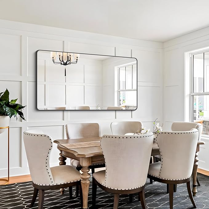 FORBATH Bathroom Mirror 30" x 55", Large Rectangular Wall Mirror with Black Aluminum Frame Rounded Corner, Wall Mounted Mirror for Bathroom Bedroom Entryway Living Room