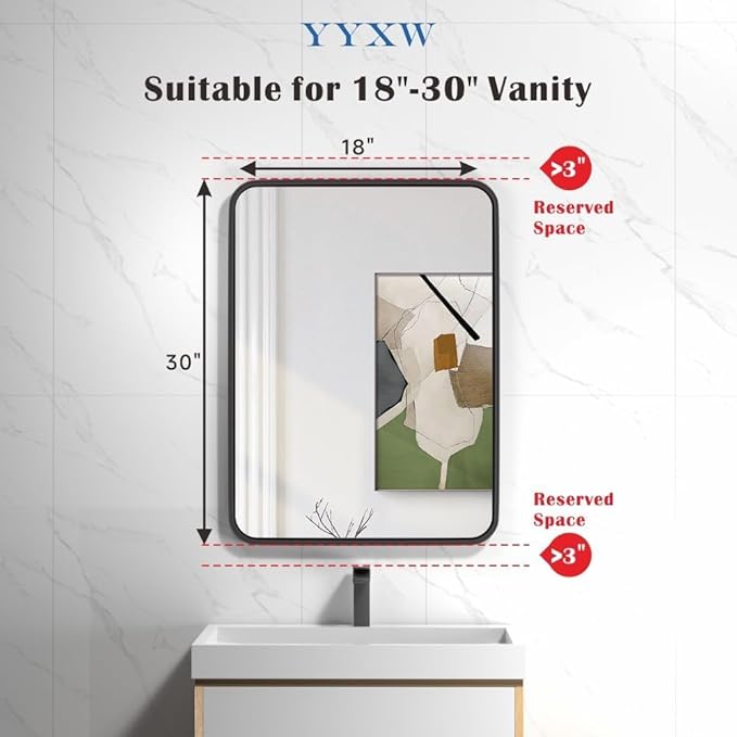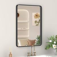 Black Metal Frame Wall Mount Bathroom Mirror, 18 x 30 Inch Rectangular Round Mirror, Matte Black Vanity Mirror, Farmhouse Style, Hang Horizontally or Vertically