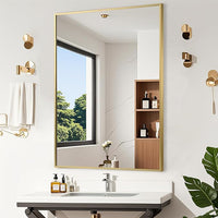 Gold Bathroom Mirror, 20"x28" Rectangle Mirror, Brushed Gold Mirror, Metal Frame Square Corner Vanity Mirror, Wall Mounted Mirror for Modern, Living Room, Bedroom, Horizontal Or Vertical
