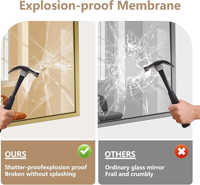 Gold Bathroom Mirror, 16"x24" Rectangle Mirror, Brushed Gold Mirror, Metal Frame Square Corner Vanity Mirror, Wall Mounted Mirror for Modern, Living Room, Bedroom, Horizontal Or Vertical