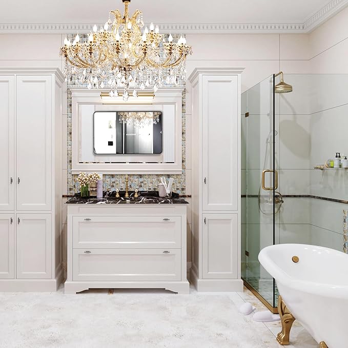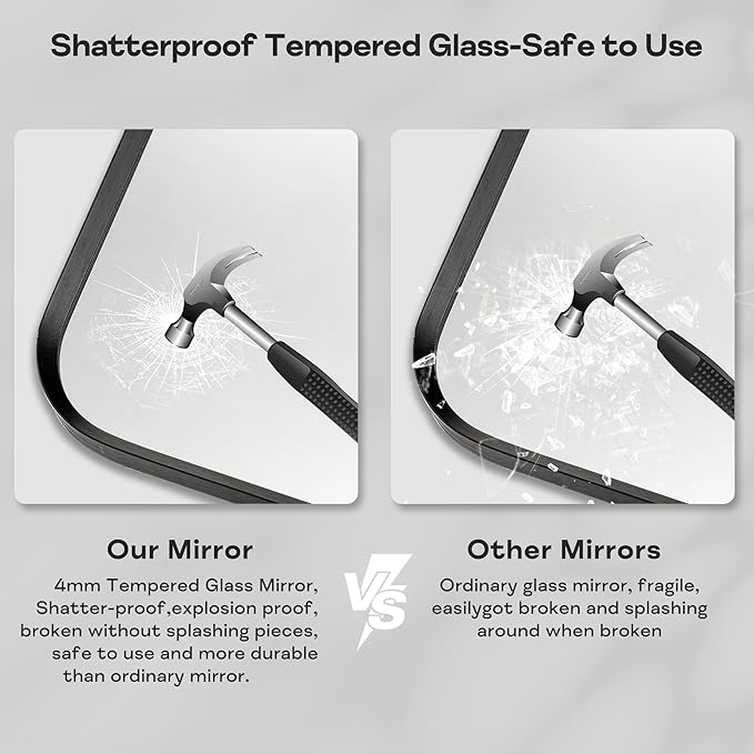 Wall Mount Mirror for Bathroom, Brushed Black Metal Framed Large Rounded Corner Rectangular Vanity Mirror, Tempered Glass, Anti-Rust, Hangs Horizontally or Vertically (30" x 40", Black)