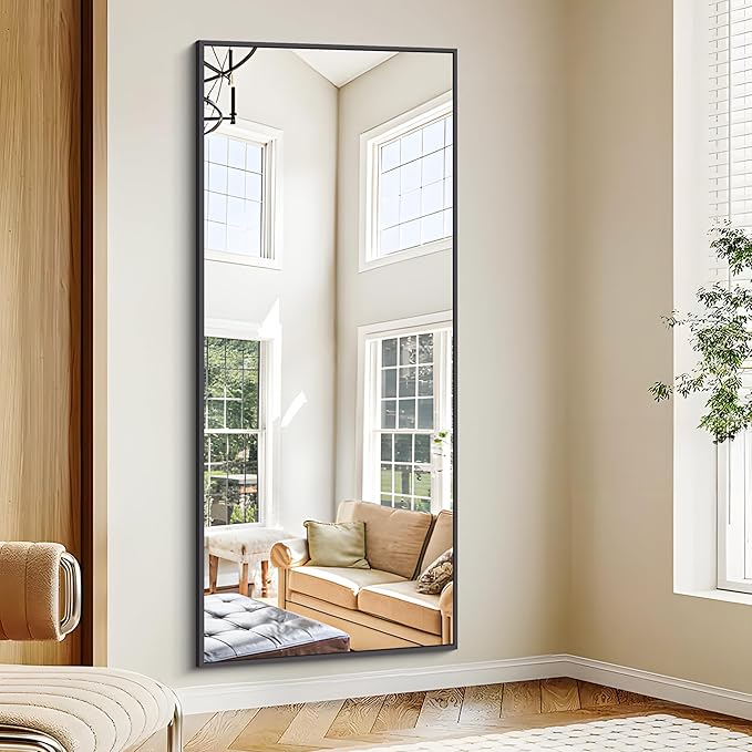 Black Bathroom Mirror for Wall, 72x30 Inch Rectangle Mirrors with Metal Frame, Modern Vanity Wall Mirror Decor for Entryway Hangs, Bathroom Living Room Horizontal or Vertical