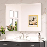 Keonjinn Brushed Nickel Mirror 40 x 30 Inch Large Silver Bathroom Mirror for Over Sink, Rounded Rectangle Farmhouse Vanity Mirror with Metal Frame, HD Tempered Glass Wall Mirror(Horizontal/Vertical)