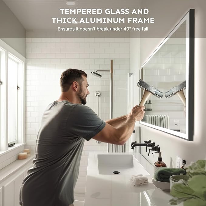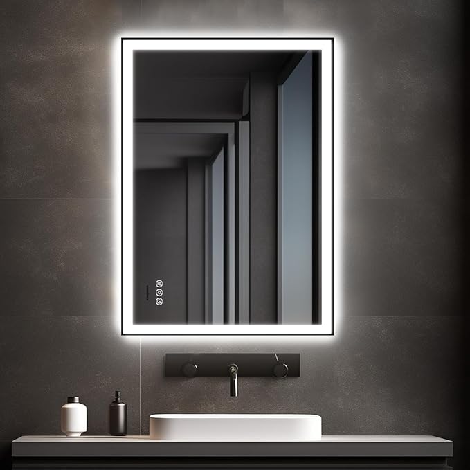 24x32'' LED Bathroom Mirror w/Light, Aluminum Frame, Dimmable Front & Backlit, Anti-Fog, Distortion Free, Light Memory, Tempered & Shatter-Proof Wall Mounted Vanity Silver Coating Mirror