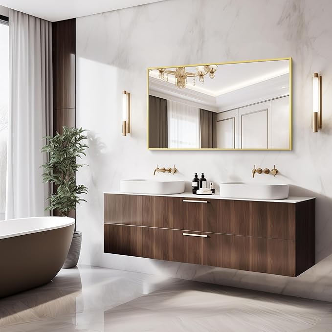 36x55inch Bathroom Mirror, Gold Rectangle Mirror with Thin Metal Frame, Large Rectangular Wall Mirror for Bathroom, Living Room, Hair Salon, Big Farmhouse Mirror Hang Horizontal/Vertical