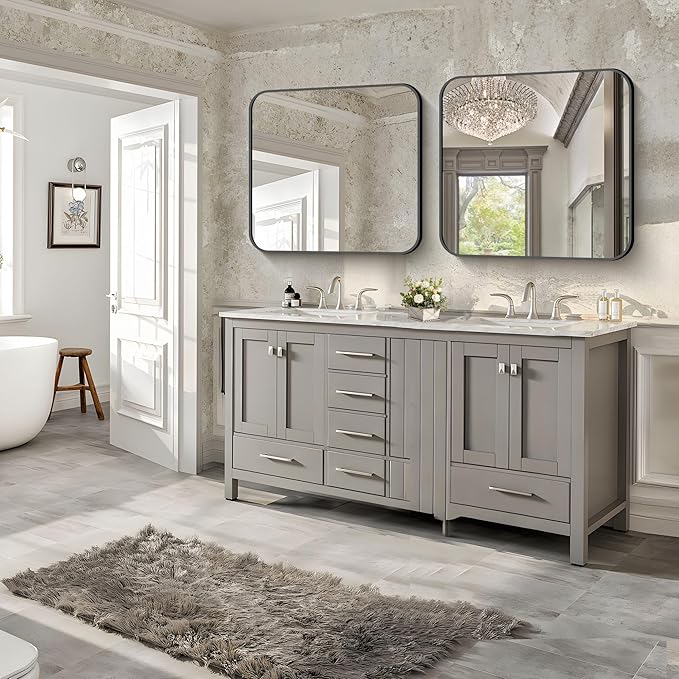 FORBATH Bathroom Mirror 30" x 30", Large Square Wall Mirror with Black Aluminum Frame Rounded Corner, Wall Mounted Mirror for Bathroom Bedroom Entryway Living Room