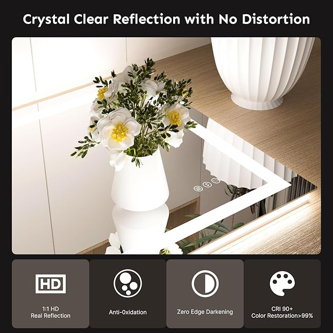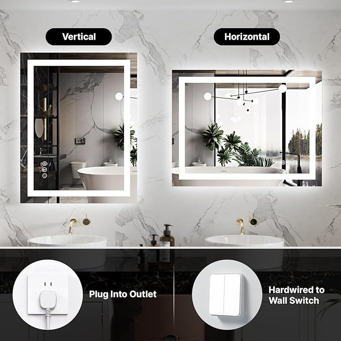 24x32 LED Bathroom Mirror with Lights – Anti-Fog, Dimmable, Backlit & Front Lit Lighted Vanity Mirror for Wall – Smart Bathroom Mirror with Memory Function, Shatterproof Tempered Glass