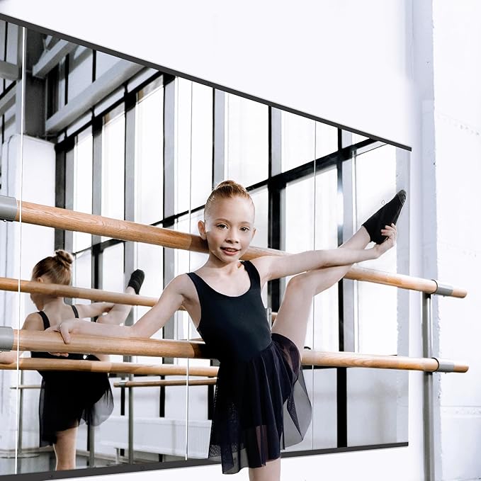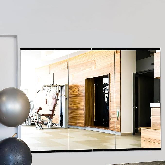 Home Gym Mirror for Wall,Mirror Full Length,48x24x3PCS,Glass Frameless Body Large Mirror for Home Gym,Workout,Bedroom,Garage(Black)