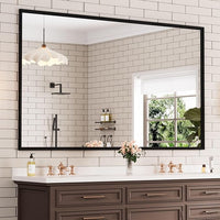WEER 60X36 Inch Black Bathroom Mirror, Rectangular Framed Mirror for Bathroom, Matte Black Wall Mounted Large Vanity Mirror, Farmhouse Mirror, Tempered Glass, Anti-Rust, Horizontal or Vertical