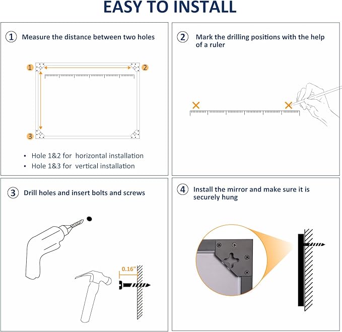 WEER Bathroom Mirror, 48x36 Inch Wall Mirror, Walnut Wood Grain Framed Mirror, Rectangle Vanity Mirror, Tempered Glass, Anti-Rust, Hangs Horizontally or Vertically