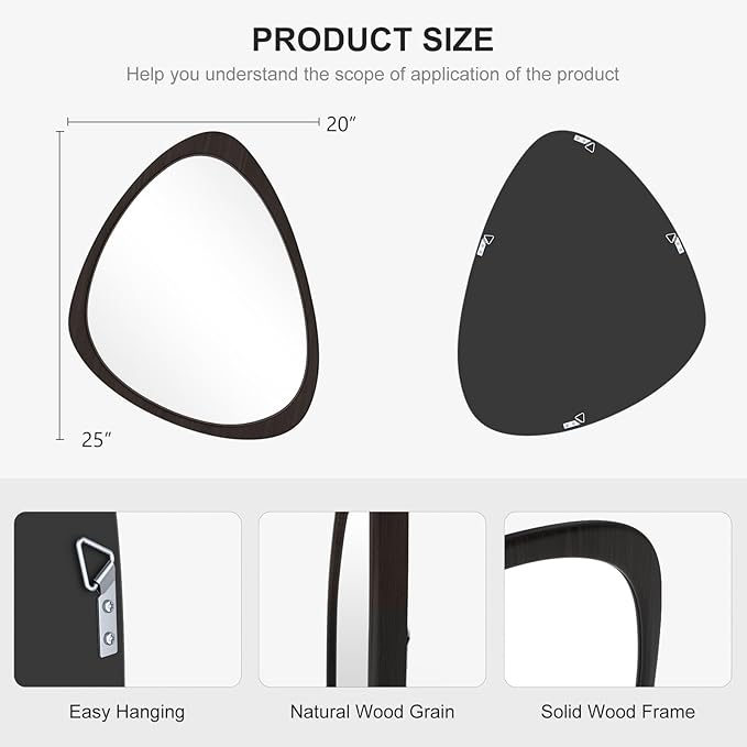 WallBeyond Asymmetrical Mirror, Irregular Wall Mirror, Wall Mirrors Decorative for Bedroom Living Room Entryway Hall, Wood Mirror for mid Century Modern Decor 25" H x 20" W, Black