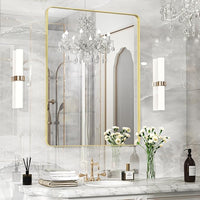 Fun Memories Wall Mirror for Bathroom, 48x32 Inch Gold Bathroom Mirror, Rectangular Wall Mounted Decorativ, Rounded Corner, Aluminum Alloy Frame, Farmhouse, Hangs Horizontal or Vertical