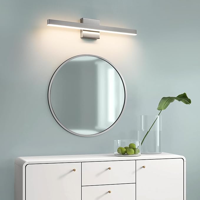 Long-lasting and Energy Saving - This brushed nickel bathroom vanity light comes with integrated LED light source. The 24 inch vanity light is 20 watts, it offers brightness that equal to an ordinary 120 watts bulb but save 80% electricity. Lifespan of the bathroom lighting fixtures up to over 5 years.