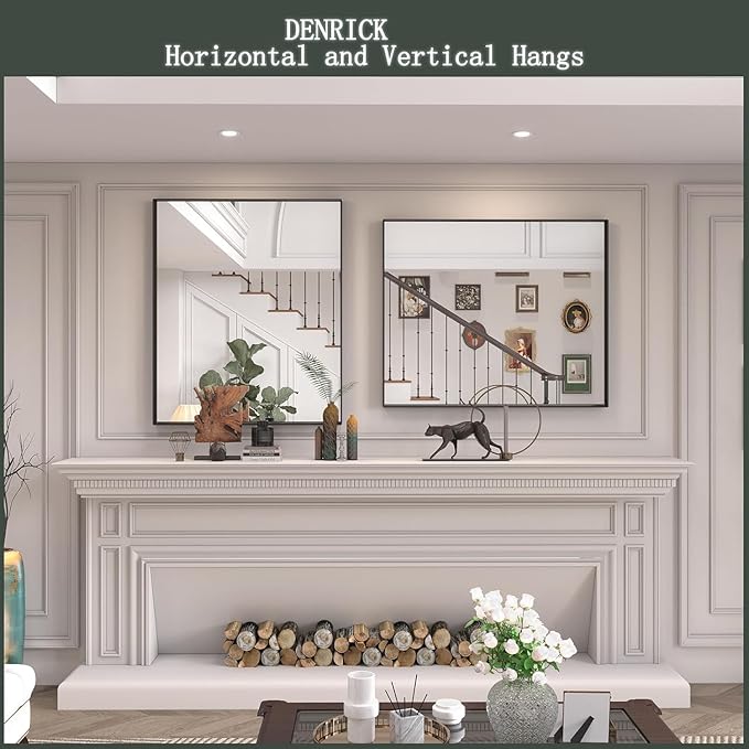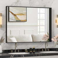Brushed Metal Thick Frame Bathroom Mirror 30 x 30 Inch Metal Frame Black Rectangular Wall Mirror Matte Black Vanity Mirrors Square Corner, Modern Rectangle Mirrors(Horizontal/Vertical)