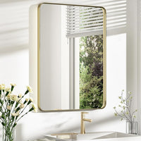 Bathroom Mirror 22x30 inch, Rustproof Aluminum Metal Framed Mirror for Wall, Matte Gold Bathroom Vanity Mirror, Shatterppoof Mirror, Living Room, Hanging or Leaning Horizontal or Vertical