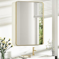 Bathroom Mirror 24x36 inch, Rustproof Aluminum Metal Framed Mirror for Wall, Matte Gold Bathroom Vanity Mirror, Shatterppoof Mirror, Living Room, Hanging or Leaning Horizontal or Vertical